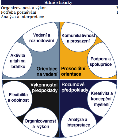 Report z testu zmiňuje také kompozitní škály, které shrnují s ohledem na jejich odlišnou „váhu“ osobnostní i výkonové předpoklady pro základní oblasti profesního uplatnění: