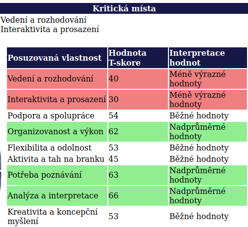 A samozřejmě, ačkoliv je Test profesního potenciálu solidním měrným nástrojem, jehož výsledky vycházejí z porovnání s relevantní normou, nenahrazuje v plném rozsahu podrobné psychologické posouzení, které standardně trvá několik hodin. Výsledky je tak třeba chápat jako výsledky screeningové, které je ještě možné ověřit podrobným psychometrickým testováním.