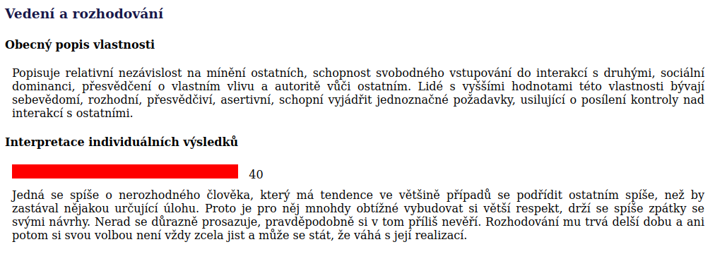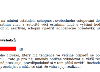 Test vypoví o vašich schopnostech logického uvažování a rozhodování, o motivaci k vedení lidí, ke spolupráci s nimi a také o vaší schopnosti zvládat stres. Zjišťujeme také, zda se máte spíše sklon přeceňovat nebo podceňovat.