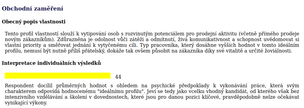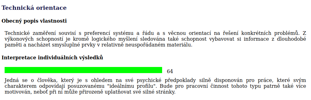 Test ukáže i posouzení globální profesní orientace. Tzn. zda jste zaměření na obchod, řízení lidí, technickou oblast, administrativní činnost…